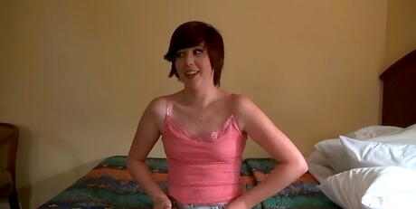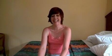Slender american babe Vionah Merci in sexy shorts revealing small tits and sexy ass