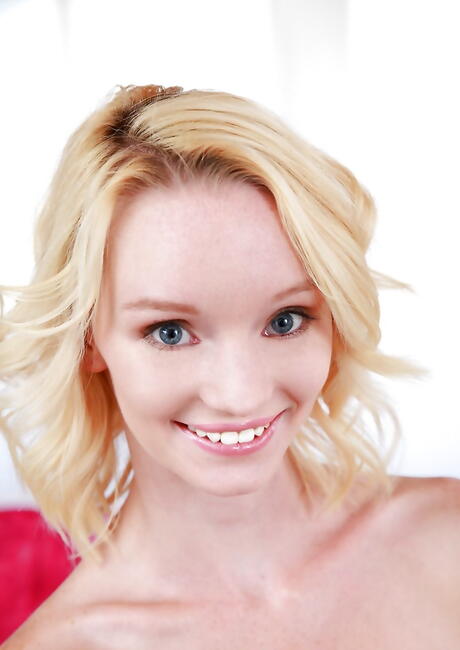 Slender american blond teen Sammie Daniels uncovers tiny tits and bald pussy