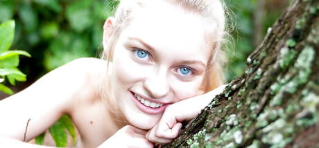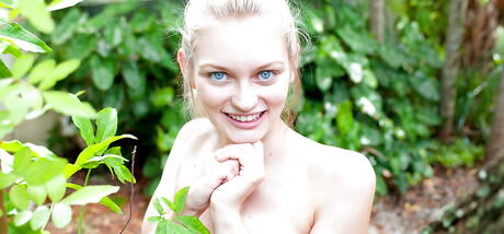 Slender american blonde teen Alli Rae in sexy underwear showing big knockers and masturbating outdoor