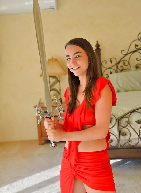Slender american dark hair teen Jeri Lynn reveals big boobies and masturbates with dildo outside