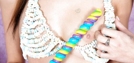 Slender american teen Farrah denudes tiny tits and toys her cunt