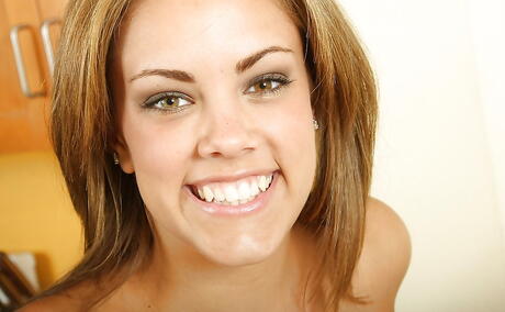 Slender american teen Katie Cummings showing big boobies and hairy twat