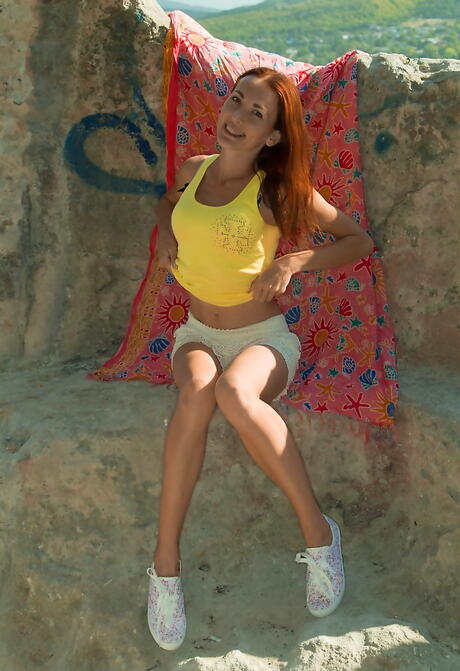 Slender babe Scarlett Nika in hot undies unveiling small tits and hairy twat outside