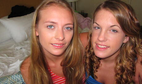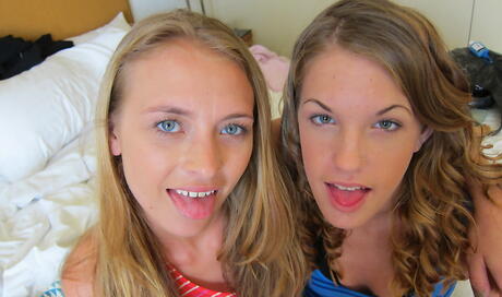 Slender babes Rebecca and Natasha Blaze in panties licking each others pussies during hot lesbian sex