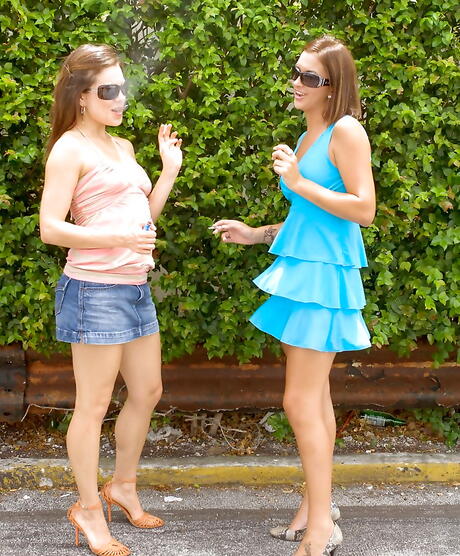 Slender beauties Emilee Parker and Angelina Korrs in hardcore threesome sex
