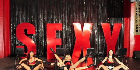 Slender beauties Jessica Drake, Kaylani Lei and Alektra Blue fuck with a strap-on