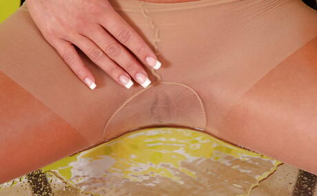 Slender blond babe Nella Elmeritta reveals small tits and spreads her legs