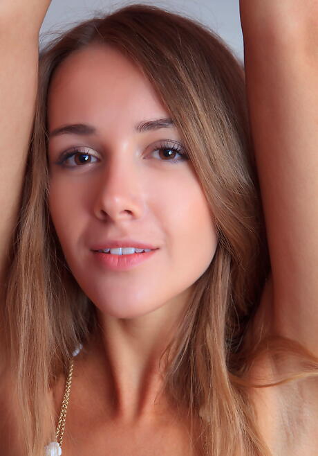 Slender blonde teen Lina Diamond uncovering tiny tits and sexy ass