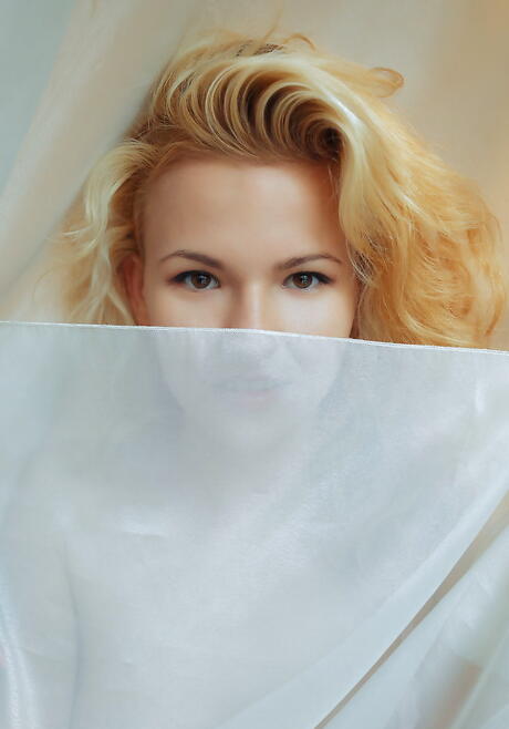 Slender blonde young Walda in hot undies shows big titties and spreads her legs