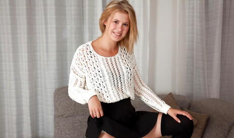 Slender blonde youthful Alisha in hot underwear showing big boobies and jerking off