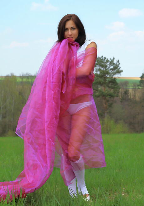 Slender czech dark hair teen Michaela Isizzu in hot panties baring small tits and spreading her legs outdoor