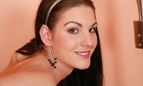 Slender dark-haired teen Amy in nice skirt uncovers small tits and masturbates