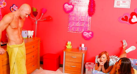 Slender hotties Dani Jensen and Pepper Foxxx in hot threesome sex scene