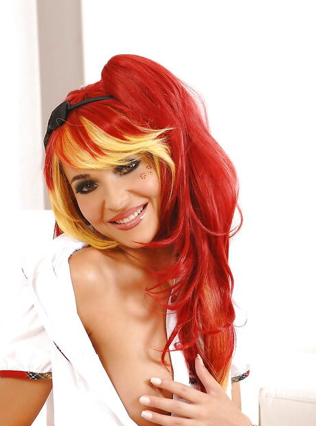 Slender hungarian youthful Alexis Brill in cosplay costume spreads her legs