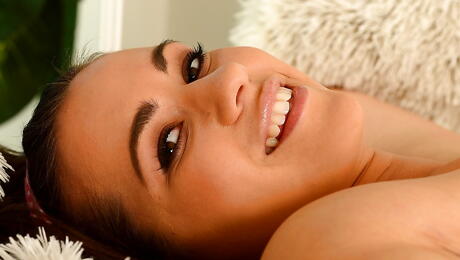 Slender teen Carrie in sexy undies uncovering tiny tits and stuffing her snatch with a toy