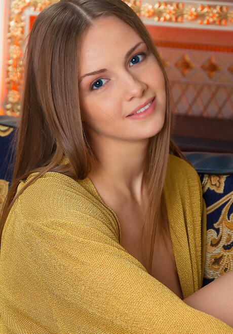 Slender teen Leanisa exposes tiny tits and spreads her legs