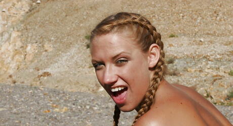 Slender teen Teena Fine hard fucked after sucking rod outside