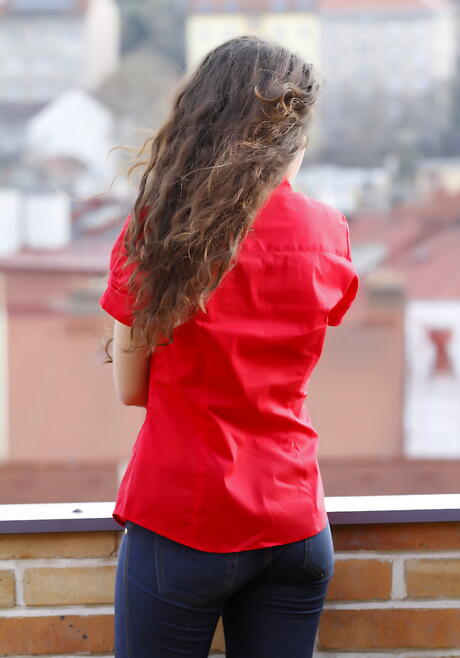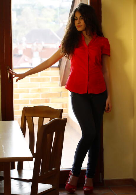 Slender youthful Soika A in jeans revealing tiny tits and ass