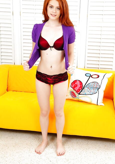Slim american redhead teen Alice Green reveals tiny tits and masturbates