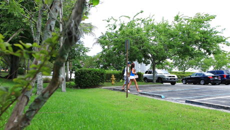 Slim american teen Alexis Grace in fancy skirt suck rod and take it in pussy outdoor