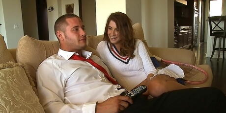 Slim american youthful Karina White in fancy skirt baring big knockers and hot ass in shower