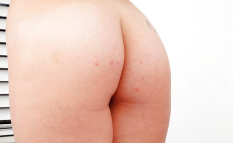 Slim blond teen Hannah Heartley in fancy shorts showing big hooters and jerking off