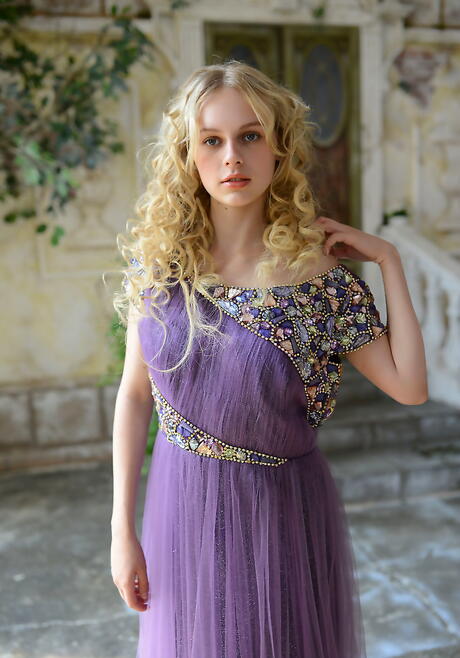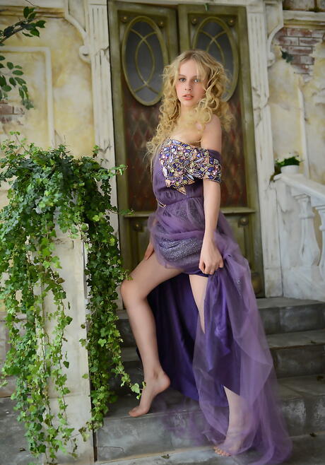 Slim blond teen Nika bares small tits and spreads her legs outside