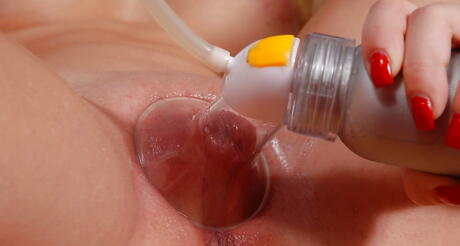 Slim blonde hottie Sera Passion in sexy shorts showing tiny tits and toying her twat