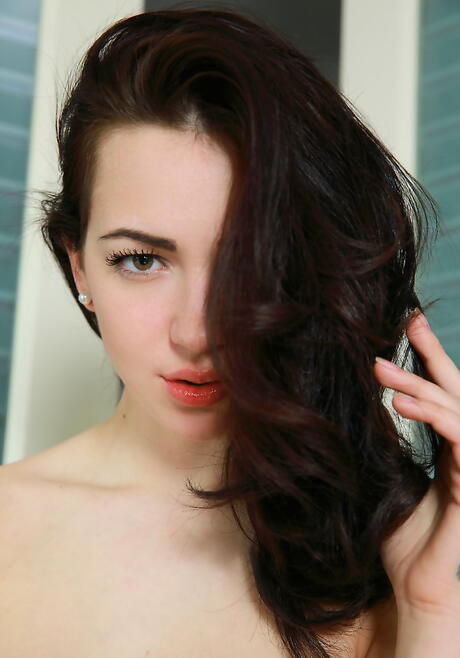 Slim brunette youthful Sivilla revealing tiny tits and spreading her legs