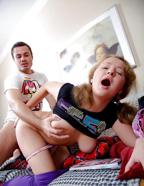 Slim canadian youthful Rose in nice skirt suck rod and fuck in her bald pussy