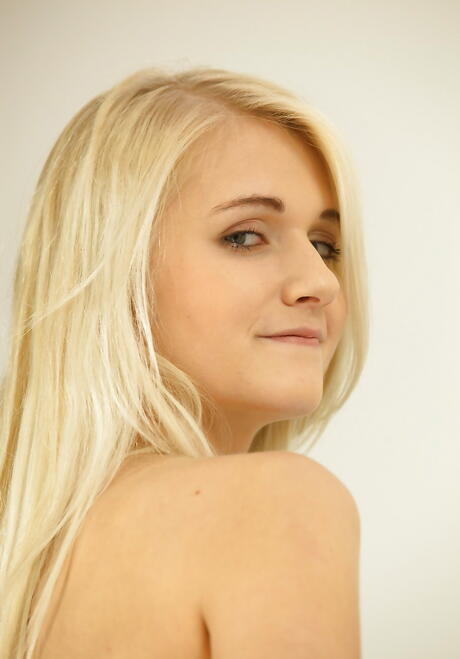 Slim czech blond teen Ashley Love in skirt exhibiting big titties and sexy ass