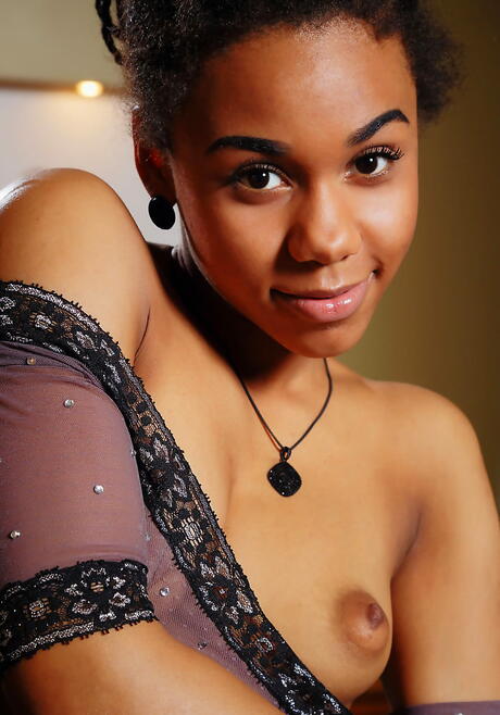 Slim dark-haired young Gana unveiling small tits and spreading her legs