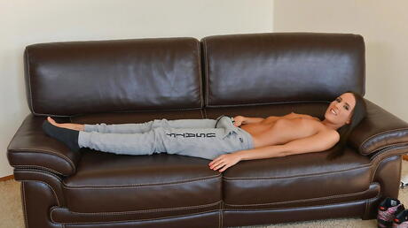 Slim hungarian brunette Adriana Brill shows tiny tits and masturbates