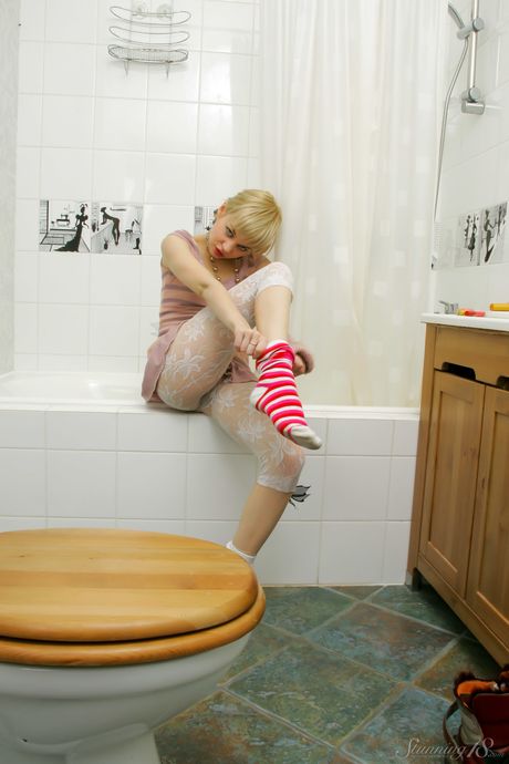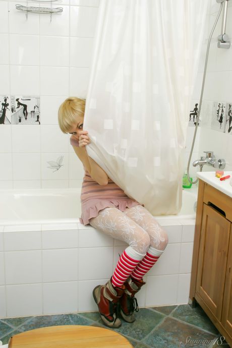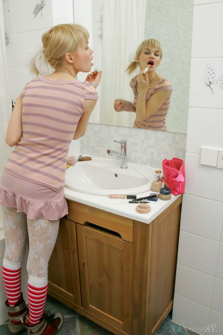18-year-old blonde Cindy B poses naked with certainty during a solo shoot