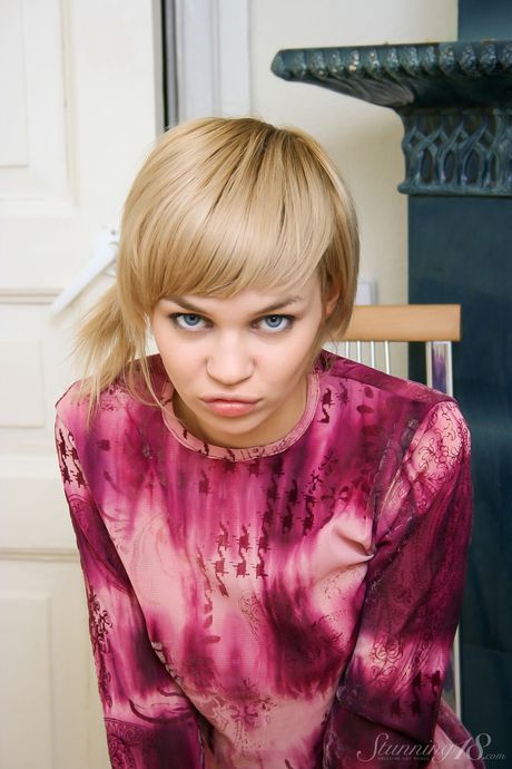18-year-old girl Cindy B poses nude without embarrassment during a solo shoot