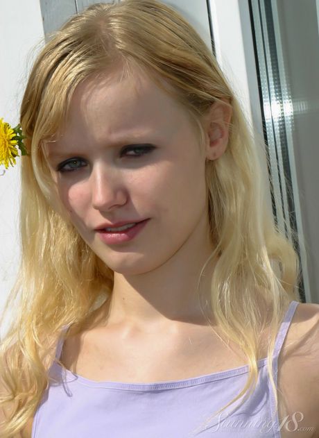 18-year-old girl Yana F gets naked on a blanket in the backyard