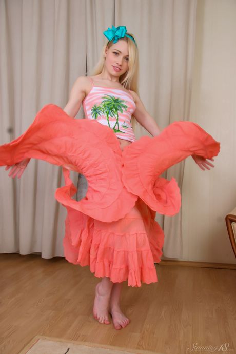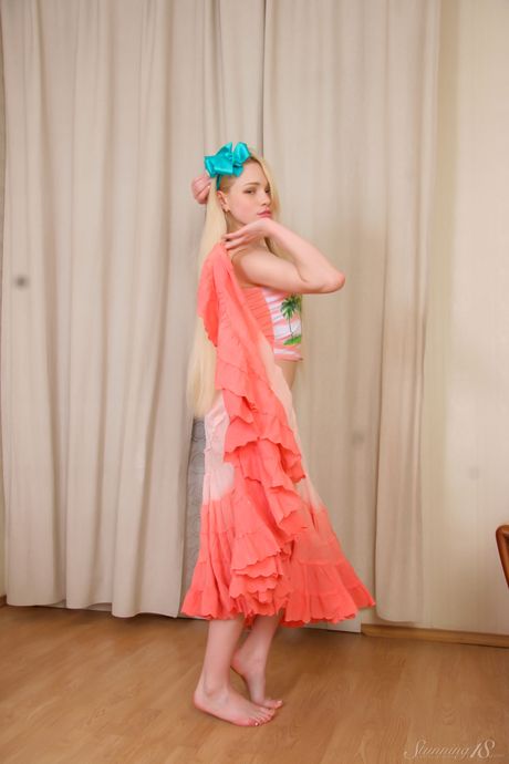 Alluring teen Olya N strips to her heels and displays her hot ass in a solo