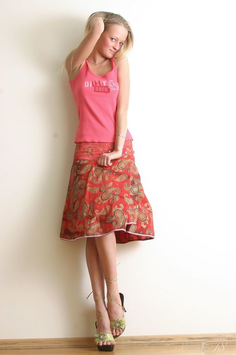 Blonde teen Marta A gets naked in heels while wearing a tiara