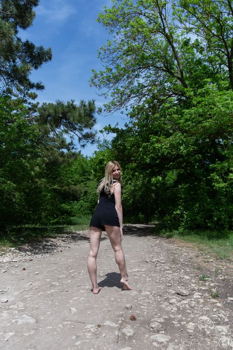 Blonde teen Varvara models totally naked on a rocky outcropping