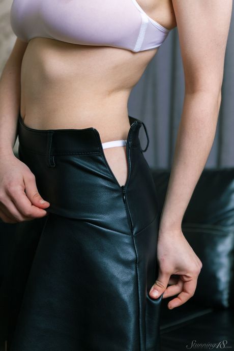 Brunette teen Esenia gets completely naked on a bed with self-assuredness