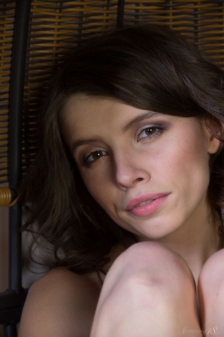 Brunette teen Karen gets completely naked without hesitation