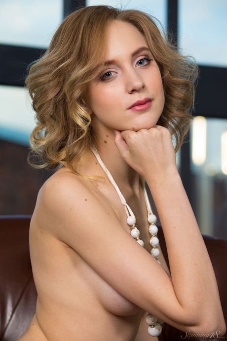 Delicate teen Angela shows her small tits & hairy cunt in a solo striptease