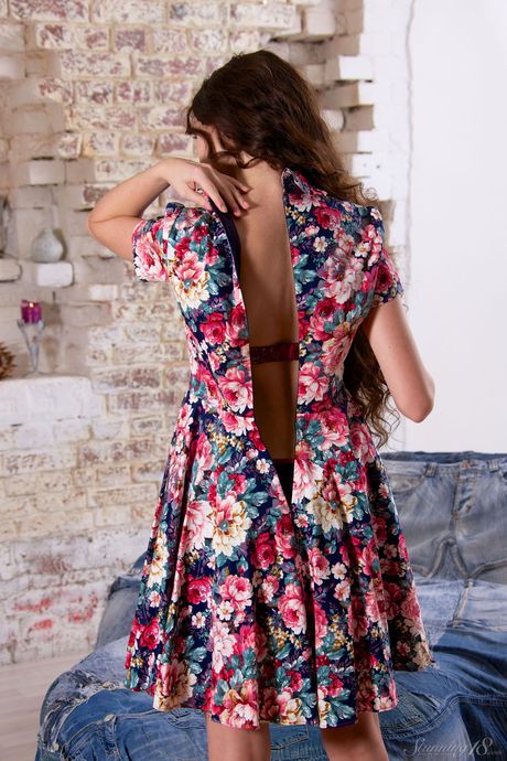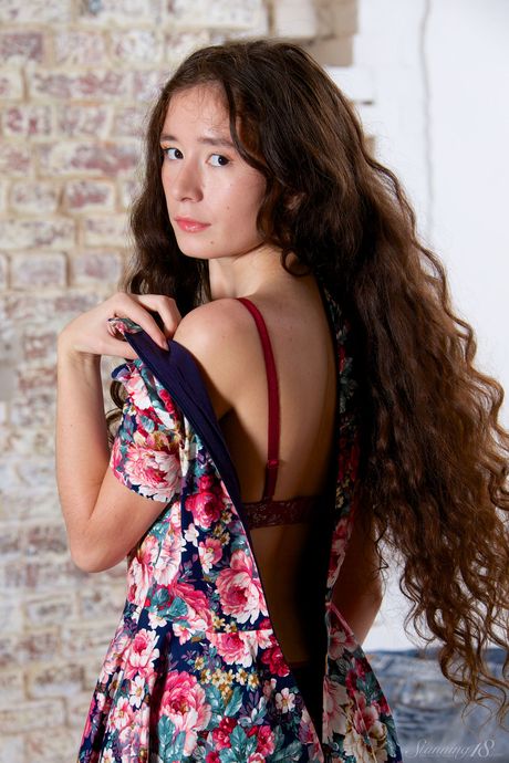 Delicate teen Delly shows her small tits and poses nude in a solo setting