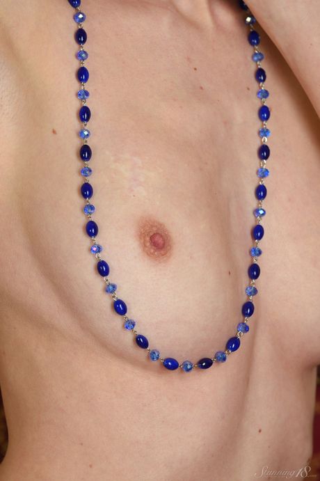 Delightful teen Irene shows her tiny tits and shaved pussy in the nude