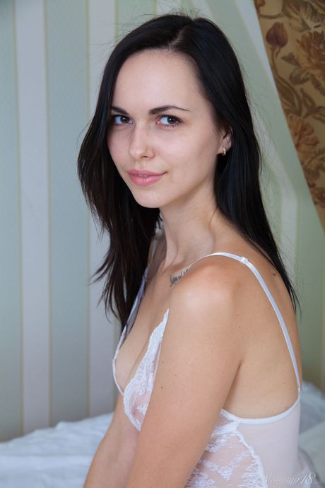 Delightful teen Jill plays with a sex toy while completely naked on a bed