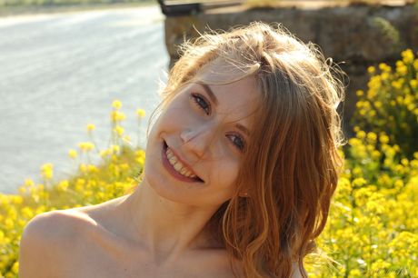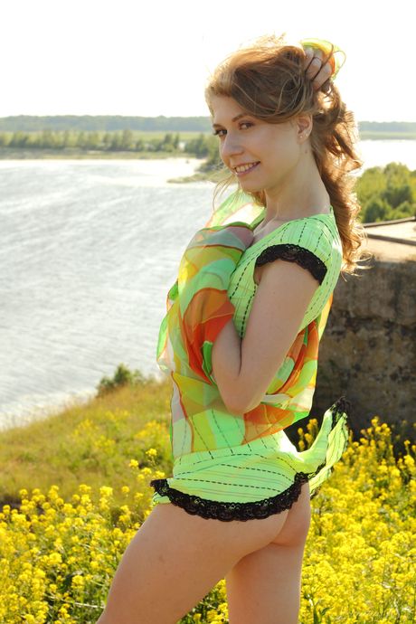 Gorgeous teen Eva Gold poses nude on a cliff overlooking the ocean
