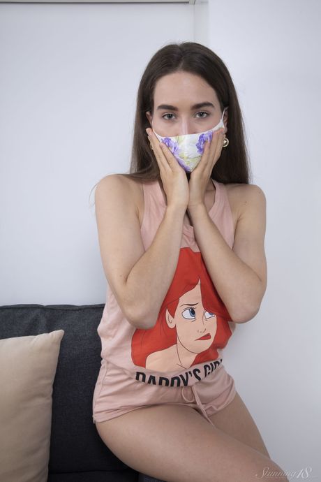 Lean teen Nara Abel fingers her pussy while completely naked on a bed