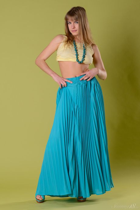 Lovely teen Lalovv A highlights her landing strip pussy while naked on a bed