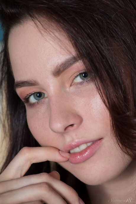 Nice teen Alyse highlights her bald pussy after getting naked on a bed