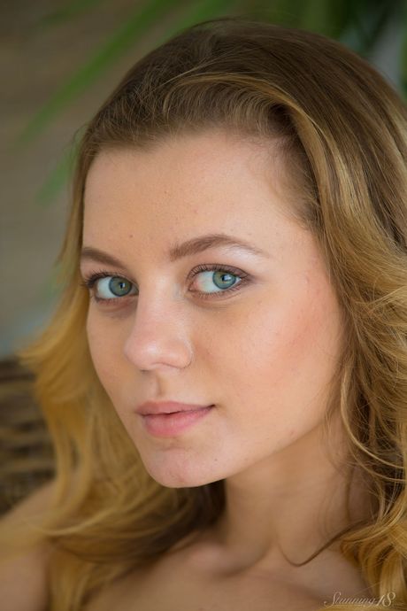 Petite teen Agnes reveals her naked form under a palm tree & flaunts her big tits & ass